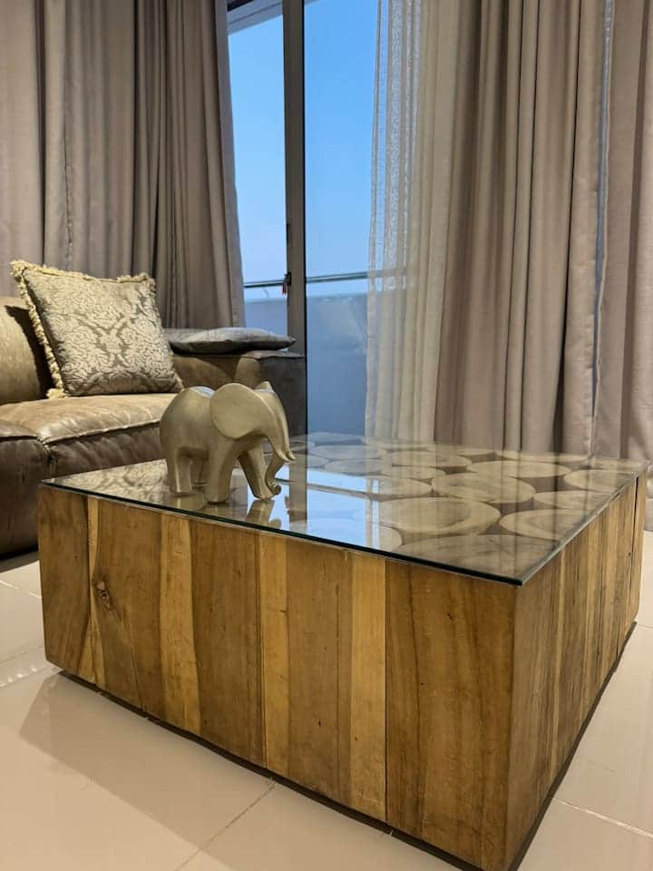 Our luxury suite offers stunning city views, a fully equipped kitchen, a comfortable living area perfect for relaxation & an air conditioning system.